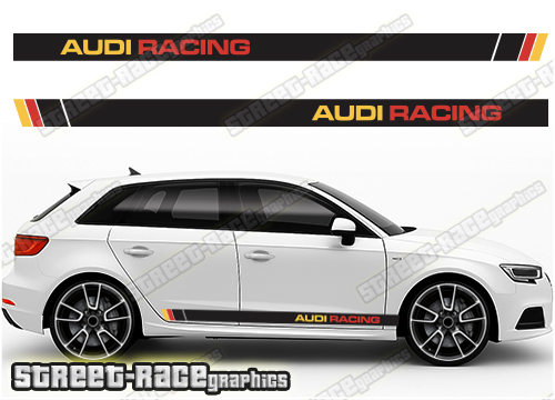 Audi A3 side racing stripe graphics, to suit all Audi A3 cars. Available in a range of different colour combinations.