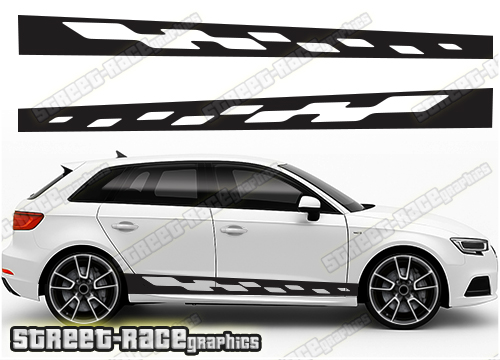 Audi A3 racing stripe stickers; decals will suit all Audi A3 cars with minor trimming around wheel arches and door shuts.