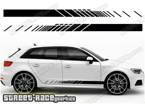 Audi A3 racing stripe stickers; decals will suit all Audi A3 cars with minor trimming around wheel arches and door shuts.
