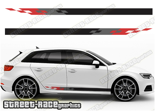 Audi A3 side racing stripe graphics, to suit all Audi A3 cars. Available in a range of different colour combinations.