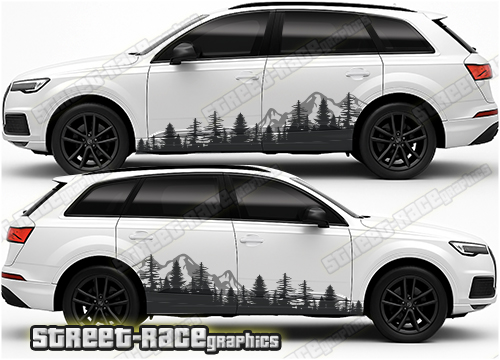 Audi Q7 graphics. They are shown on the 2020 Audi. The decals are universal fit: they are not pre-cut for any specific Q7 so they will be suitable for any facelift variants. They do not have any door handle cutouts, wheel arch or door line splits. These will require trimming during fitting.