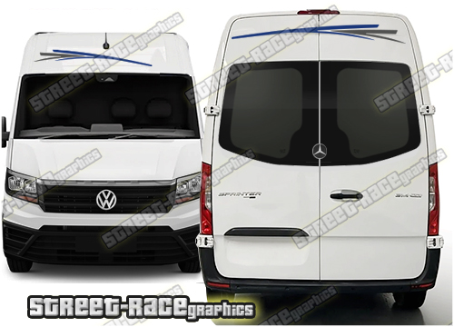 Campervan / Motorhome graphics kits. These are ideal for giving your existing camper a new look or to finish off a new camper conversion project. They are sized to fit the Mercedes Sprinter and VW Crafter (all years and variants).