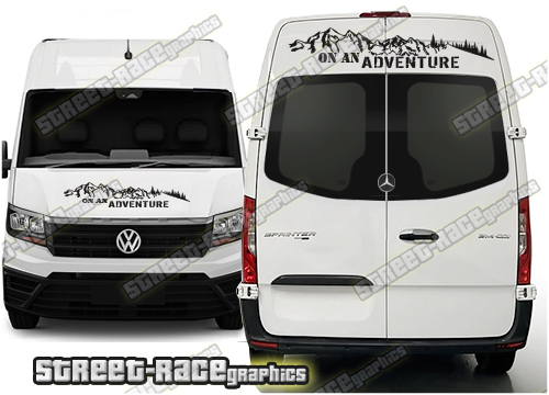Campervan / Motorhome graphics kits. These are ideal for giving your existing camper a new look or to finish off a new camper conversion project. They are sized to fit the Mercedes Sprinter and VW Crafter (all years and variants).