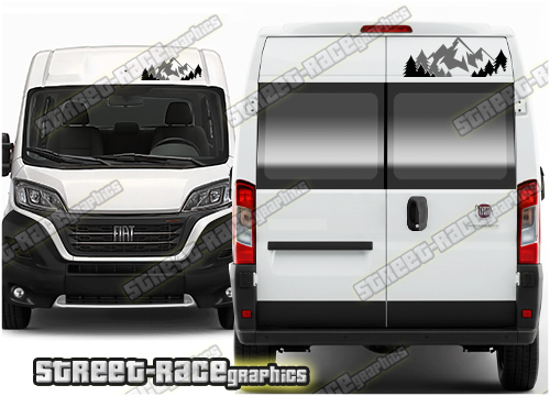 Campervan / Motorhome graphics kits. These are ideal for giving your existing camper a new look or to finish off a new camper conversion project. They are sized to fit the Peugeot Boxer, Citroen Relay and the Fiat Ducato.