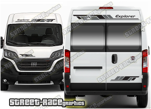 Campervan / Motorhome graphics kits. These are ideal for giving your existing camper a new look or to finish off a new camper conversion project. They are sized to fit the Peugeot Boxer, Citroen Relay and the Fiat Ducato.
