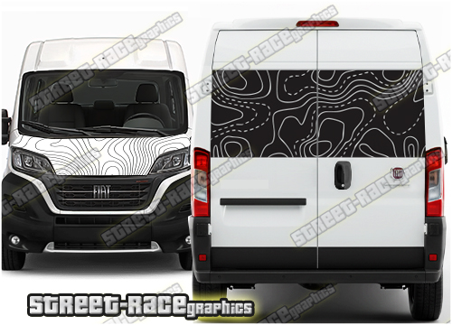 Campervan / Motorhome graphics kits. These are ideal for giving your existing camper a new look or to finish off a new camper conversion project. They are sized to fit the Peugeot Boxer, Citroen Relay and the Fiat Ducato. These complement the graphics listed in the ‘side graphics’ category. The rear graphic creates a ‘false window’ effect. If you already have a window installed, we can send just a sheet of white contour lines out to you on request – just add a message on the checkout page.