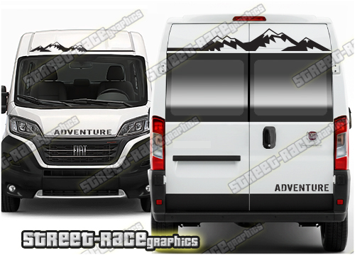Campervan / Motorhome graphics kits. These are ideal for giving your existing camper a new look or to finish off a new camper conversion project. They are sized to fit the Peugeot Boxer, Citroen Relay and the Fiat Ducato. These complement the graphics listed in the ‘side graphics’ category.