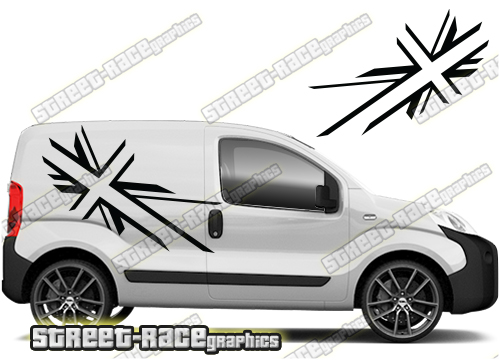Fiat Fiorino stickers. Shown fitted to the third generation, but they are universal fit. They will fit the Fiorino Qubo, Fiorino Cargo Base and Fiorino Combi and all other variants. They are not trimmed for any specific Fiorino – there are no cutouts for the wheel arches or door lines: these will require trimming during fitting.