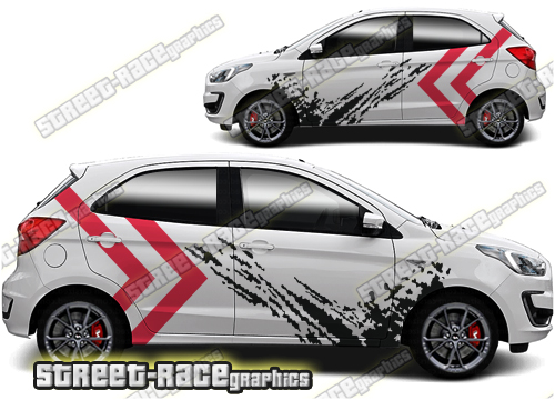 Ford Ka large graphics. They are a universal fit to suit all Ford Ka cars and facelift variants. There are no cutouts for the door handles, wheel arches or door lines; these will require trimming during fitting.