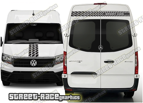 Campervan / Motorhome graphics kits. These are ideal for giving your existing camper a new look or to finish off a new camper conversion project. They are sized to fit the Mercedes Sprinter and VW Crafter (all years and variants).