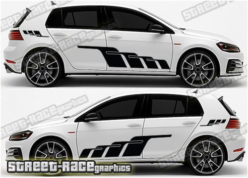 Volkswagen Golf Rally sticker kit from street race graphics. This will fit all versions of the Volkswagen Golf. Trimming is required around wheel arches.